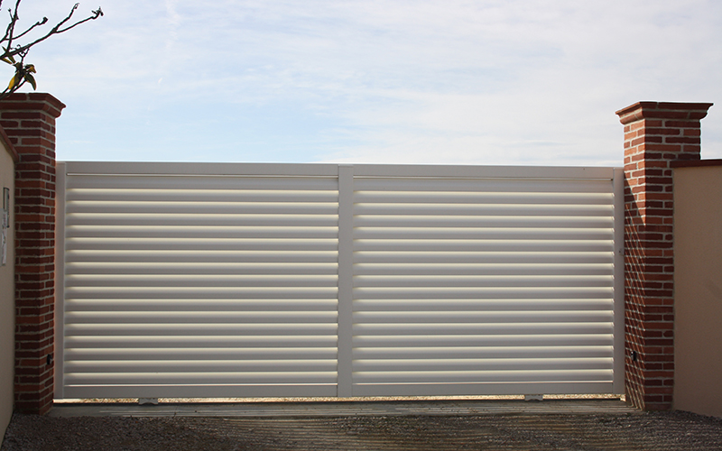 Portail coulissant KSM en 4410 x 1860 blanc motorisé, posé par nos soins.