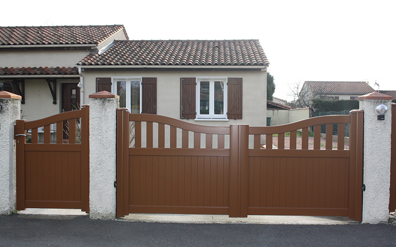 Portail 2 vantaux KSM en 2990 x 1300/1150 finitions brun argile motorisé posé par nos soins.